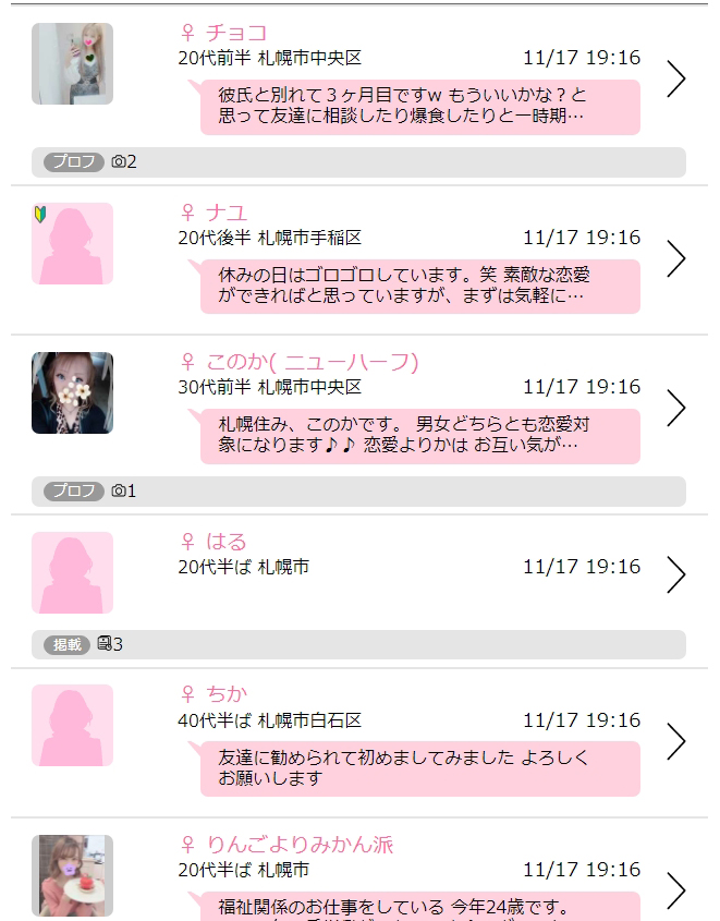 札幌在住方なので早ければその日のうちに出会いを見つけちゃうこともできます。