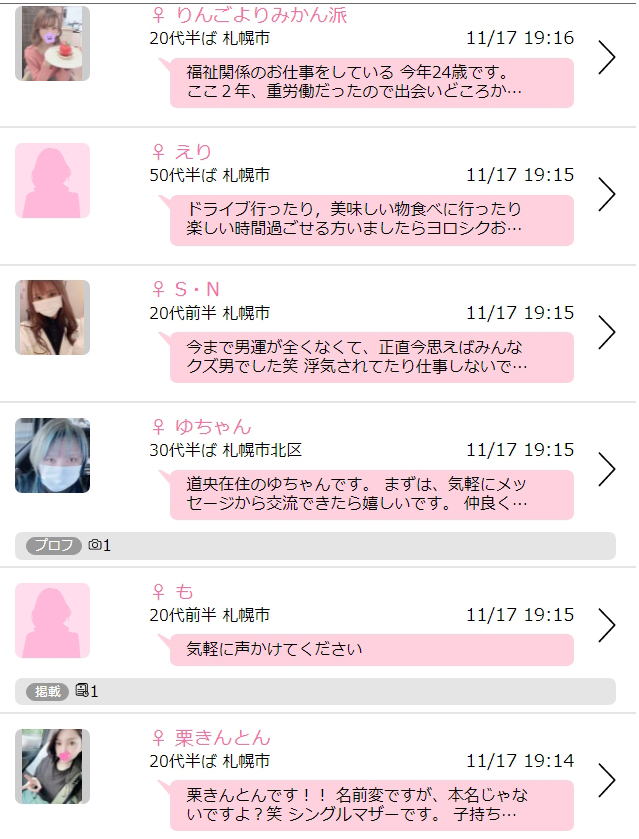 札幌在住の出会い系掲示板でどんな女性がいるのか一部ピックアップして紹介していきます!
